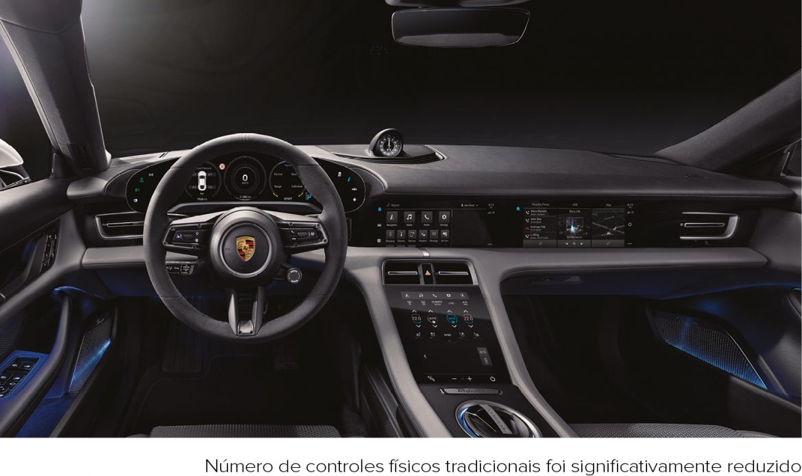 Digital, funcional e sustentável. Assim a Porsche define o interior do Taycan. Quem visitou o último Salão do Automóvel, realizado ano passado em São Paulo, viu de perto a quantas anda o rápido processo de digitalização do ambiente interno dos automóveis. Naturalmente, tal evolução começa pelos modelos das marcas mais icônicas – como a própria Porsche. Mas, na velocidade em que a conectividade e a digitalização caminham no setor, muito do que se vê hoje no topo das pirâmides em breve estará à disposição também dos simples mortais.