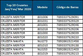 Em Cruzetas, Meritor e Nakata se destacam nos Top 10 mais vendidos de Janeiro a Março 2020: