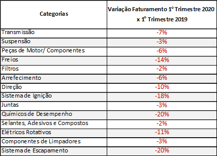 De acordo com o Painel de Distribuidores de Auto Peças da NPD – parceira de conteúdo do Novo Varejo e das plataformas digitais Aftermarket Automotivo –, o mercado de reposição de peças automotivas sofreu -7% de queda de faturamento no primeiro trimestre de 2020 versus o mesmo período de 2019, e o reflexo das medidas relativas à pandemia do COVID-19 já têm consequencias negativas no Aftermarket nacional.