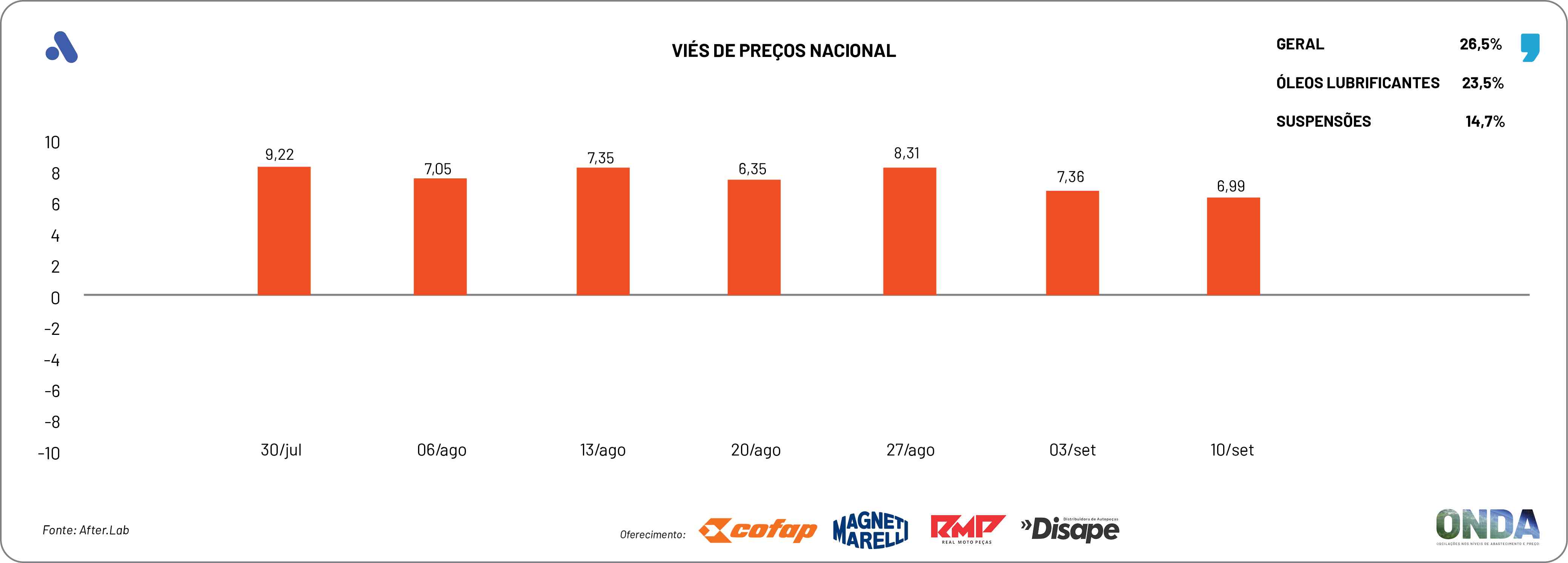 A edição mais recente divulgada pelas plataformas digitais do Novo Varejo e do Aftermarket Automotivo mostra que no período de 6 a 10 de setembro a percepção de alta nos preços apontada pelos varejistas atingiu a média nacional ponderada de 6,99%.