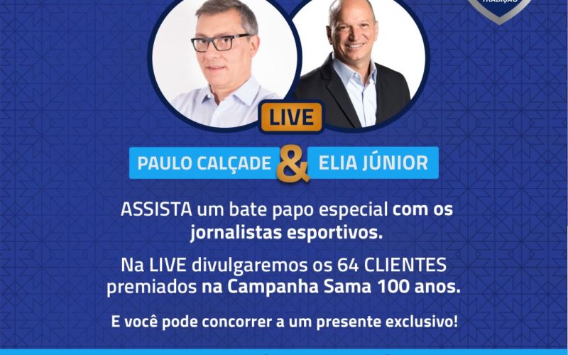 Para dar prosseguimento às comemorações dos seus 100 anos, a Sama vai promover na quinta-feira, 25 de agosto, uma live especial no Instagram sobre copas com os comentaristas Paulo Calçade e Elia Júnior.