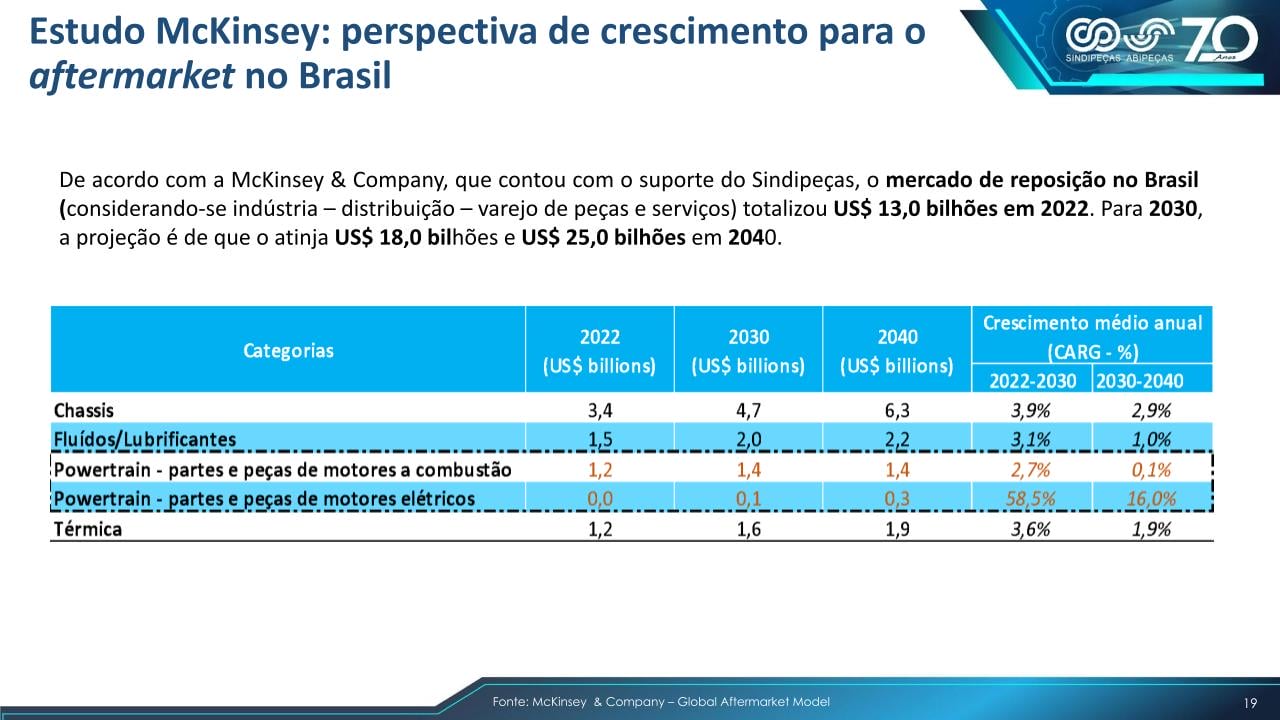 “É o momento de a indústria se unir e levar para os governos municipais, estaduais e federal as nossas pautas, para que possamos construir juntos políticas industriais que possam aproveitar as oportunidades da nossa matriz energética e, em segundo lugar, dar esse salto de qualidade na nossa indústria de transformação. Esse momento, para o mercado de reposição, também é muito propício porque hoje a produção, tanto de leves quanto de pesados, está menor, porque os caminhões têm o problema do Euro 6, os leves têm o problema dos financiamentos, e as pessoas estão deixando de comprar os novos e indo para os seminovos, o que está movimentando o mercado de reposição. Dentro dessa oportunidade de o Brasil se tornar um hub e fornecer para o mundo, o mercado de reposição vem junto, porque vamos vender motores e caminhões, mas depois as autopeças vêm junto.