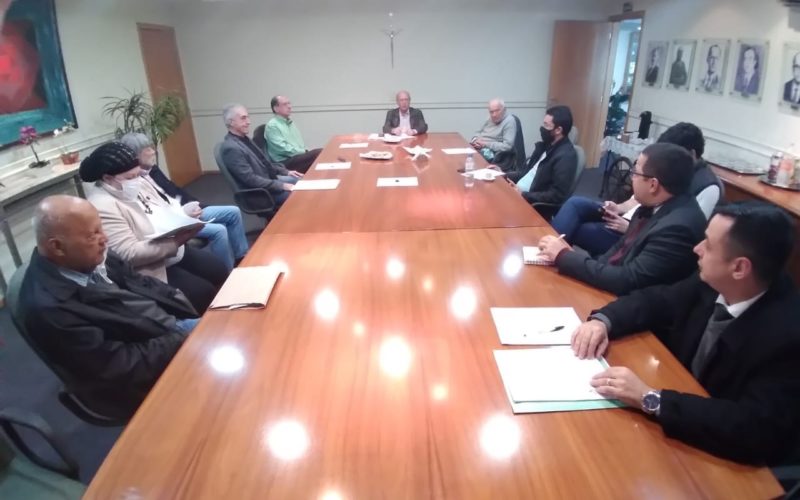 O presidente do Sincopeças-SP, Heber Carvalho, recebeu o presidente do Sindicato dos Comerciários de São Paulo, Ricardo Patah, para iniciar conversações sobre as negociações coletivas para o ano 2022 / 2023. A comitiva dos comerciários contou com a presença do diretor do Departamento Jurídico, Marcos Afonso de Oliveira, e membros da equipe, e foi recebida pela diretoria do Sincopeças-SP, integrada pelos 1º e 2º tesoureiros, Álvaro Pereira e Edson Koga, e pelos diretores, Francisco De La Tôrre e Alexandre Lima Pereira.