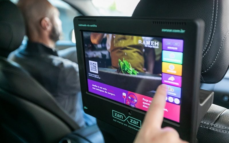 Aproveitando outro boom, o dos carros por aplicativo, a Zanzar traz telas interativas com conteúdo de qualidade segmentado pelos canais Serviços, Entretenimento, Aventura, Gastronomia e Infantil. Com maior tempo de exposição das DOOH, o impacto é muito maior e há baixa dispersão.