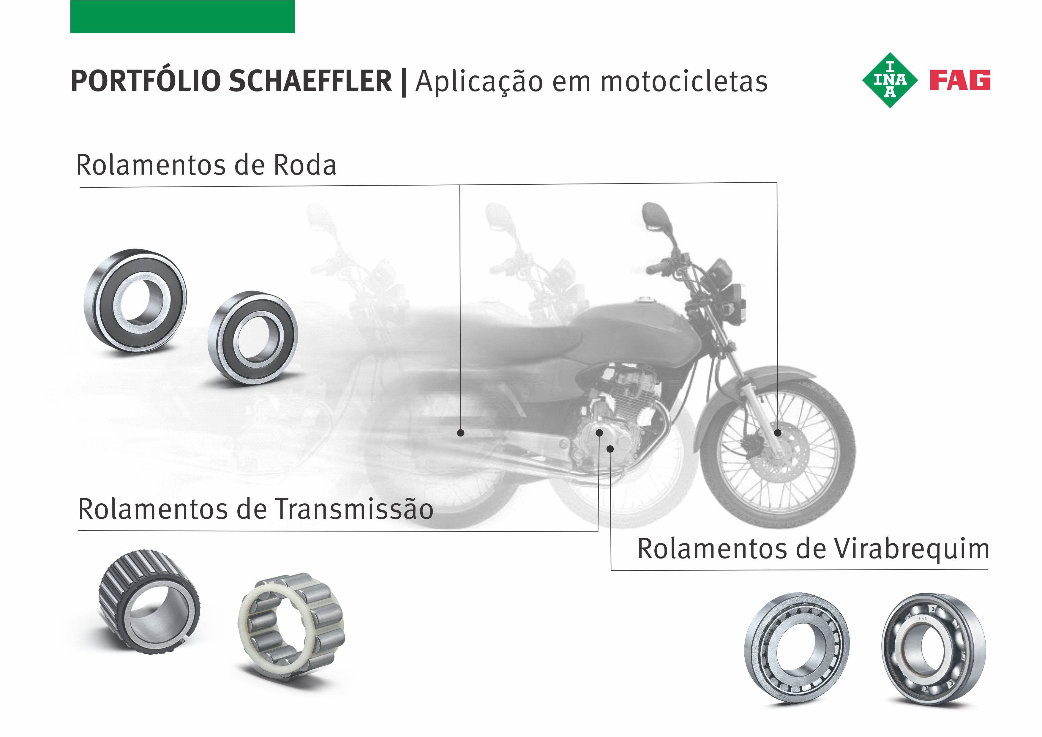 Com as marcas de produto INA e FAG, a Schaeffler fornece ao mercado de reposição de motocicletas uma ampla variedade de componentes para sistemas de motor, transmissão e chassi.