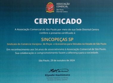 Sincopeças-SP recebe homenagem da Associação Comercial de São Paulo Distrital Centro