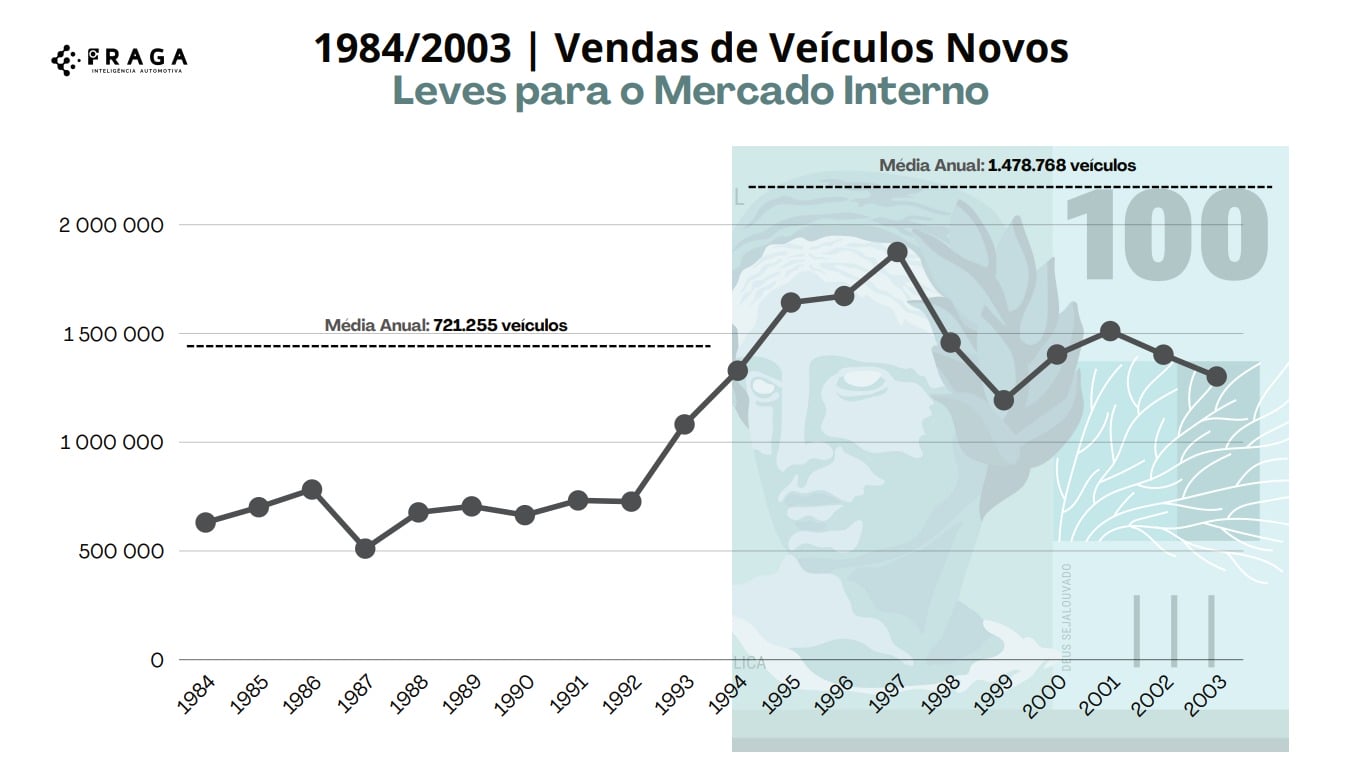 Este período também foi marcante para a popularização das marcas asiáticas (em escalares inferiores, é verdade) com o Honda Civic e Toyota Corolla iniciando suas produções locais e conquistando o coração do público brasileiro. A soma dessas tendências resultou até então no recorde de vendas no ano de 1997 com o total de 1,9 milhões de veículos comercializados este ano e 15 milhões de veículos na década (1994 até 2003), pavimentando caminhos estratégicos para as novas políticas industriais que se sucederam ao longo dos anos 2000.