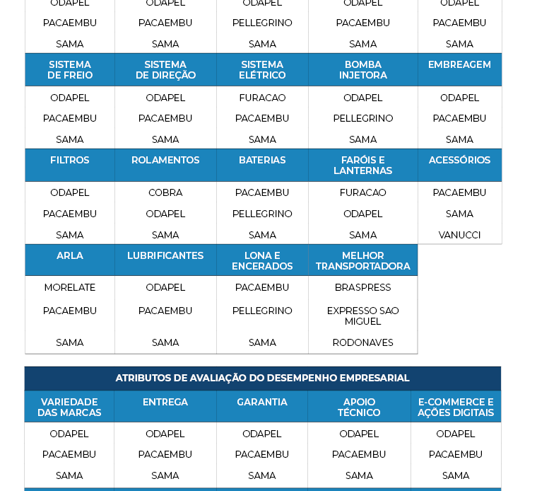 Os gestores do varejo também foram convidados a apontar os distribuidores de sua preferência nos seguintes atributos de avaliação do desempenho empresarial dos fornecedores: