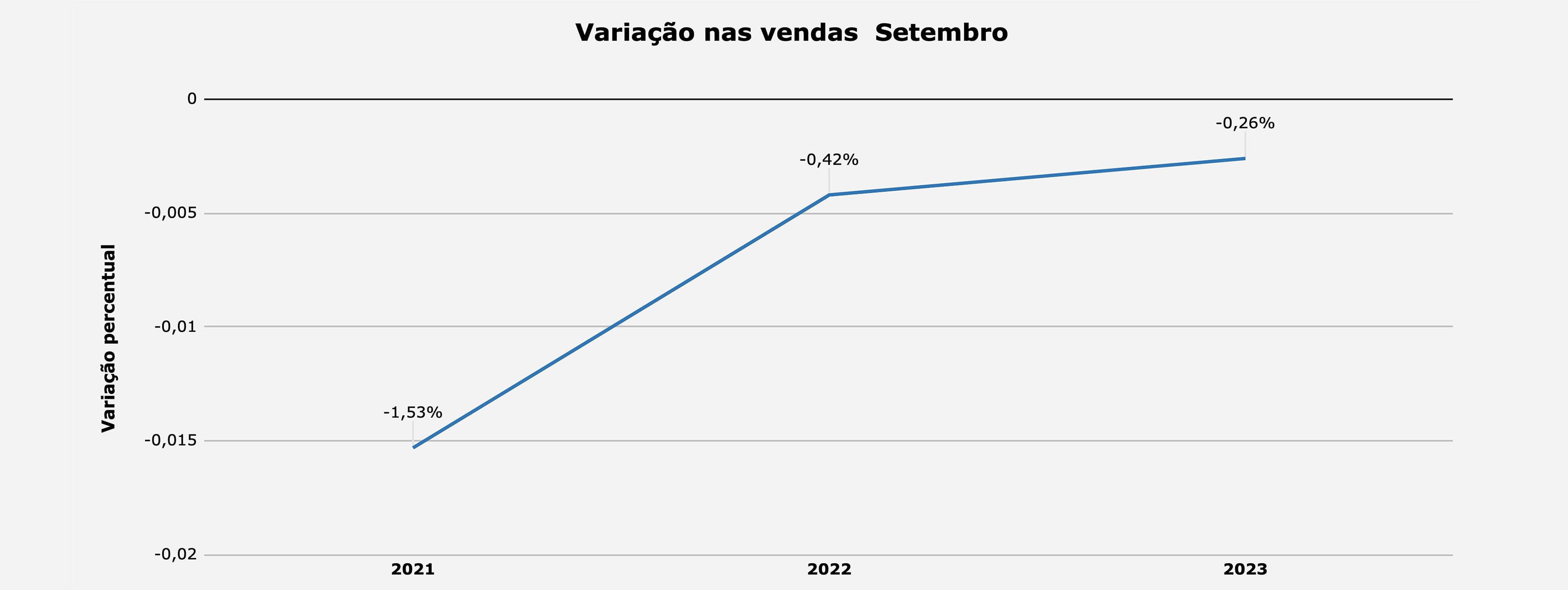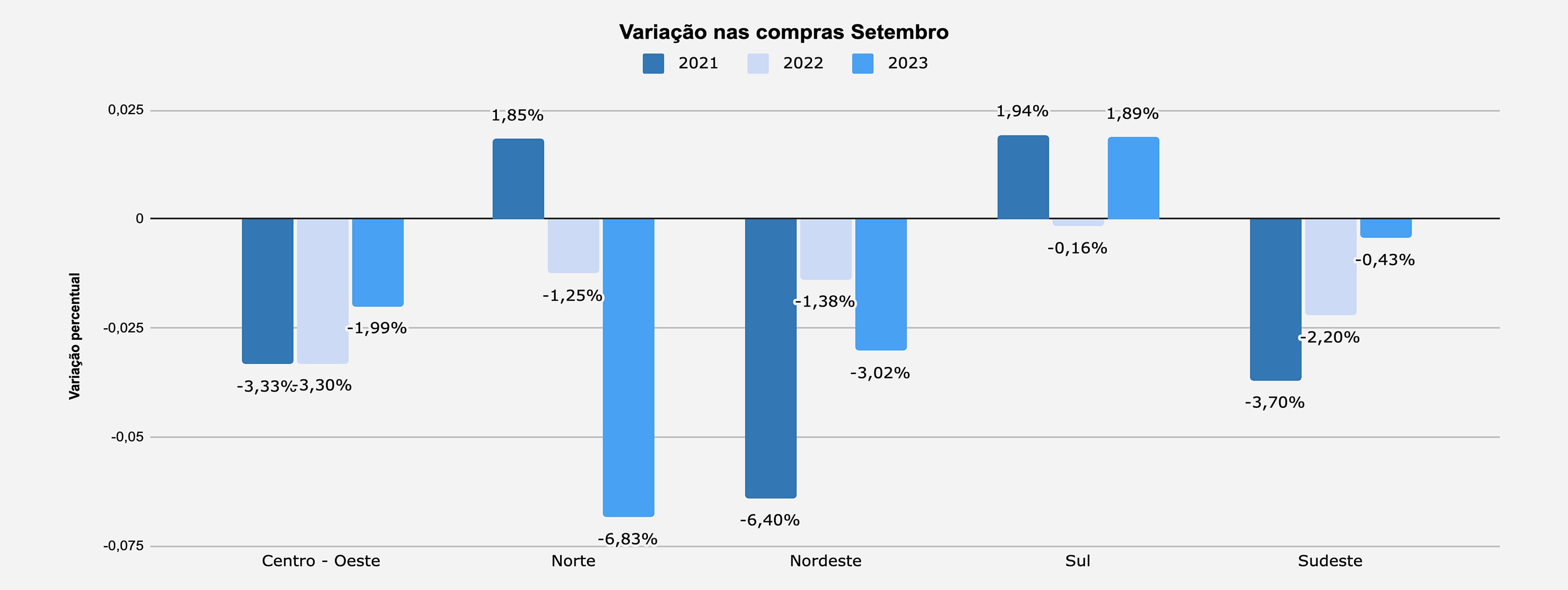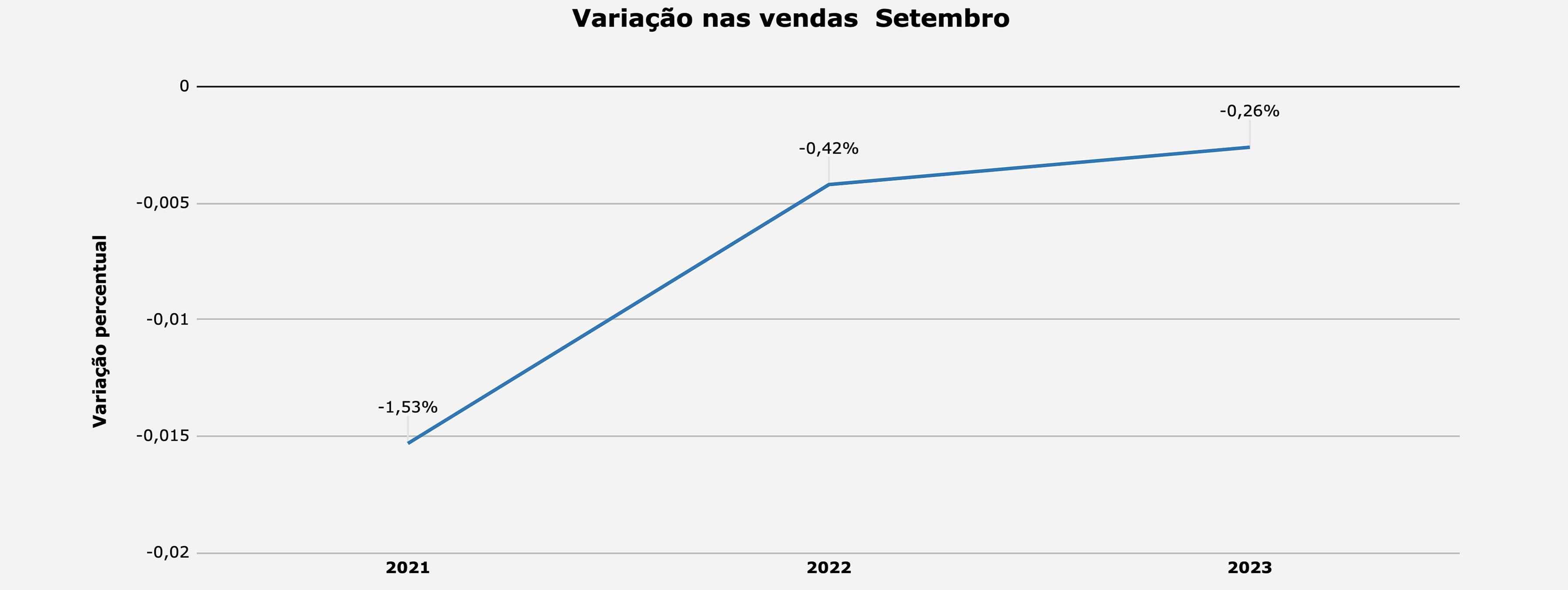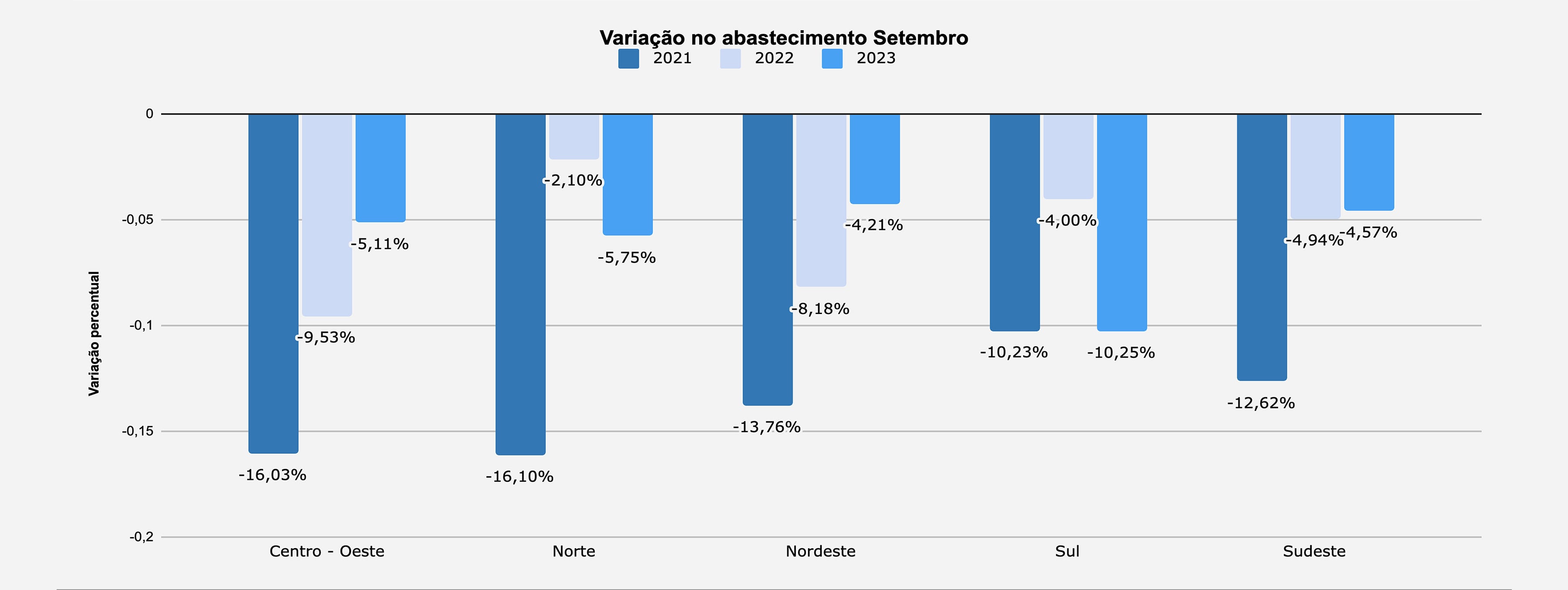 Na pesquisa MAPA, a média nacional das vendas ficou negativa no mês: -0,26%. No entanto, o índice é melhor do que aqueles apurados no mesmo mês dos anos de 2022 e 2021, conforme você poderá observar no gráfico de vendas a seguir. A reposição dos estoques manteve trajetória de queda, com resultado final para o mês de -0,9%. O índice acompanha a movimentação de vendas – como ela – também apresenta melhora na comparação com os dois outros anos em análise, ainda que negativo no geral.